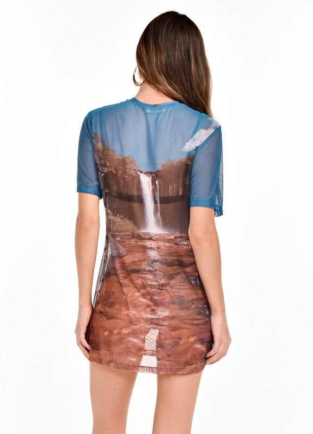° Camiseta/vestido manga corta semi transparente