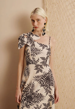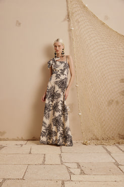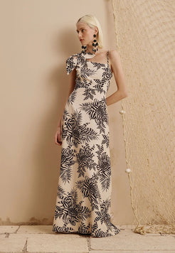 ° Vestido largo con aplicación de flor