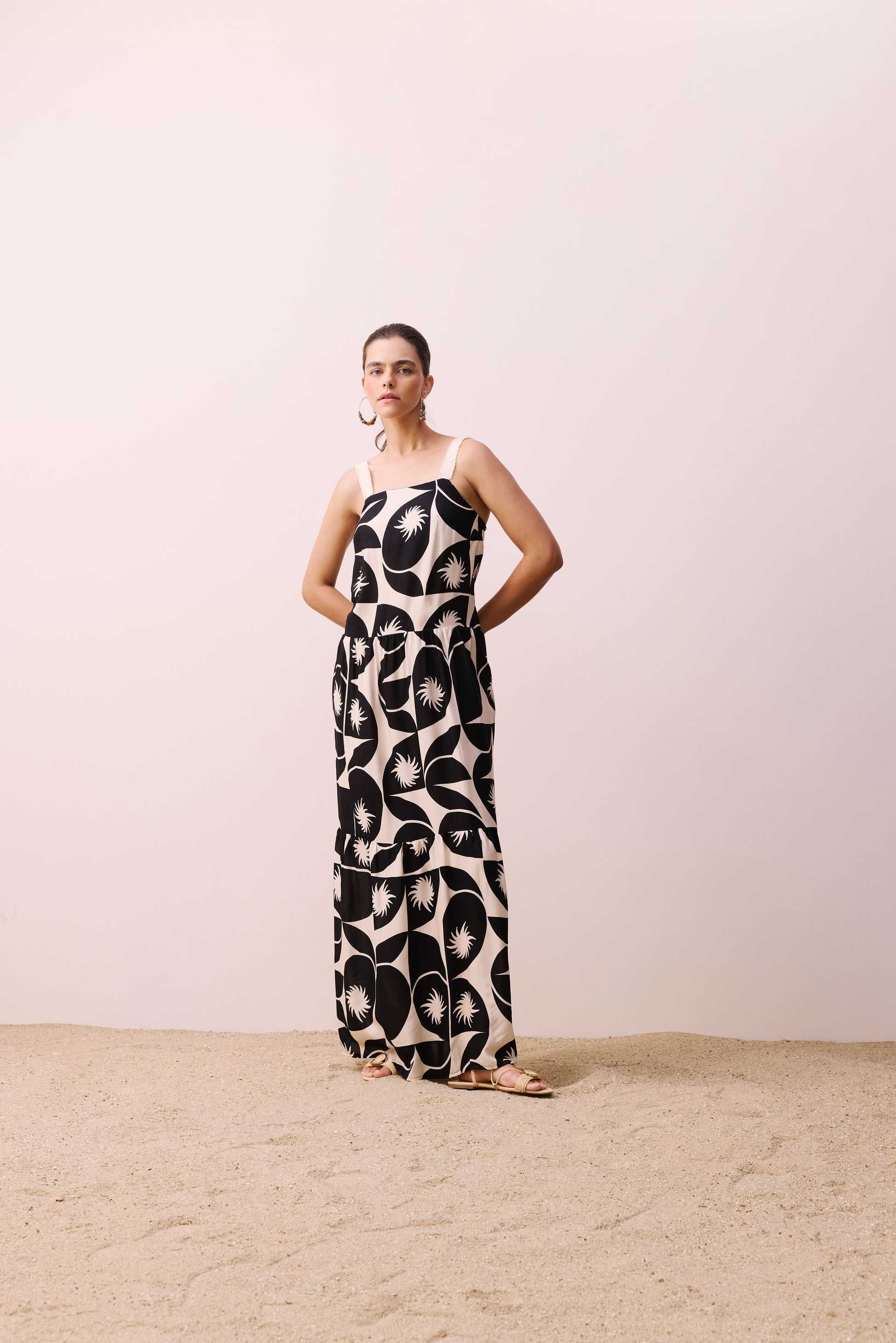 ° Vestido largo con detalle tejido en breteles